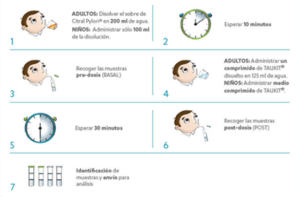 El Test aliento Helicobacter mide los niveles de hidrógeno, metano y anhídrido carbónico en el aire espirado antes y después de ingerir un sustrato (urea marcada con C13).